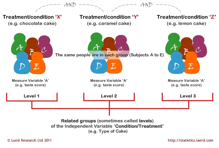 重复测量单因素方差分析(Repeated Measures One-Way ANOVA):用于同一组受试者在不同时间点或条件下的多次测量,以分析时间或条件对结果变量的影响。