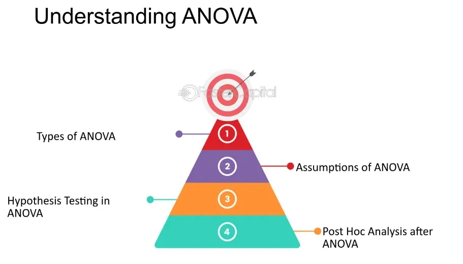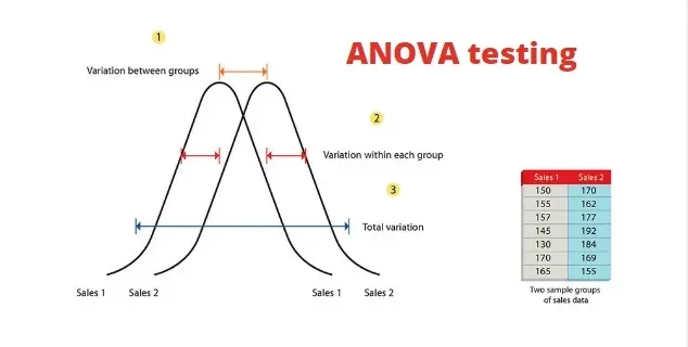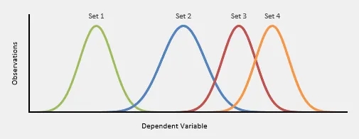 方差分析(ANOVA)的工作原理是通过分析多个组内的方差水平,来判断这些组之间是否存在显著差异。具体来说,ANOVA 从每个组中抽取样本来进行比较。在 ANOVA 测试中,首先需要检查由自变量定义的每个组内的方差——这个方差是通过各个组中因变量的数值计算得到的。然后,将每个组内的方差与所有组均值的整体方差进行比较。