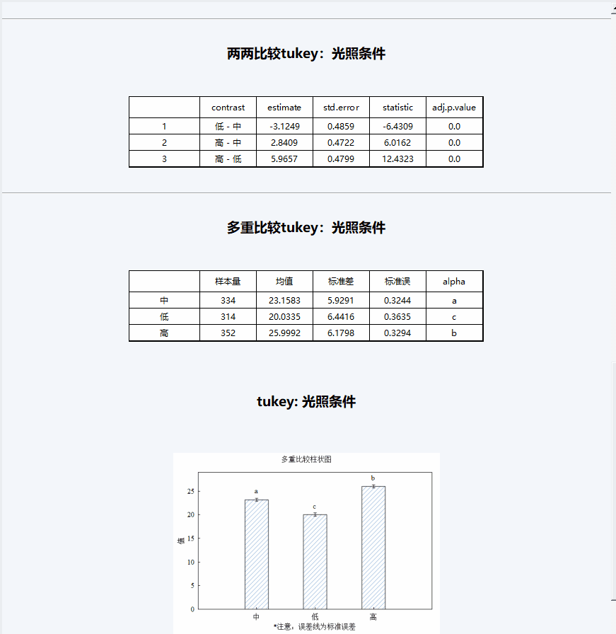 c.多重比较方法:有多种多重比较方法供大家选择, 本次分析我们选用TukeyHSD。