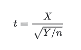 首先让我们引入t分布的定义:当一个随机变量X服从标准正态分布,而另一个随机变量Y服从自由度为n的卡方分布时,随机变量t: