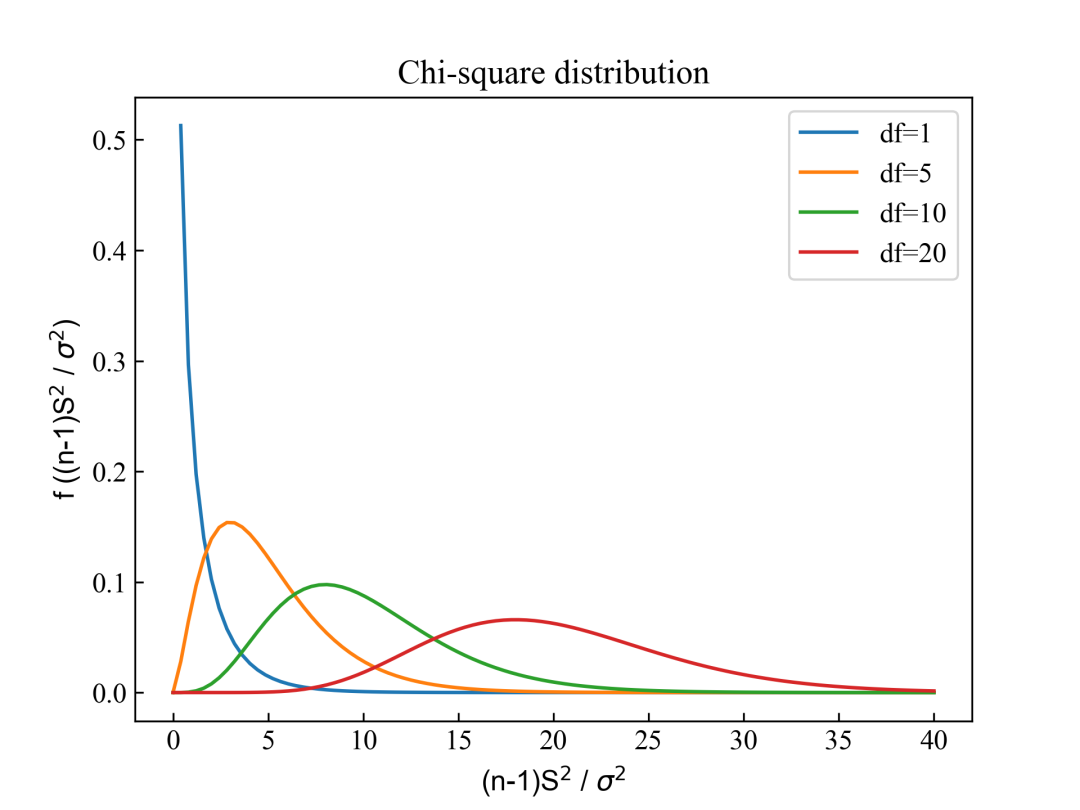 服从自由度为n-1卡方分布的随机变量Y:设X1, X2, ... Xn是来自服从正态分布总体的随机变量,则样本方差与总体方差之比服从一个自由度为n-1的卡方分布:
