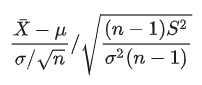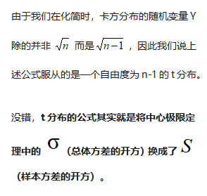 服从一个自由度为n的t分布。阅读上述定义似乎与我们要做的事情毫无关联,但且让我们来找出两个符合上述要求的随机变量出来后,再来品味一番。