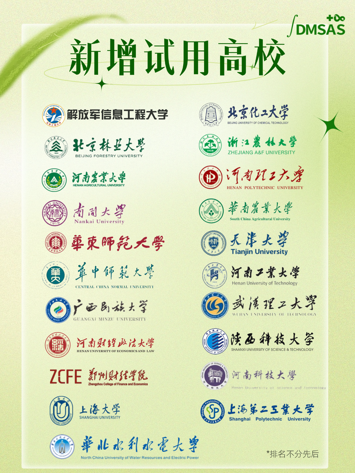 DMSAS已为这些高校开通试用啦!