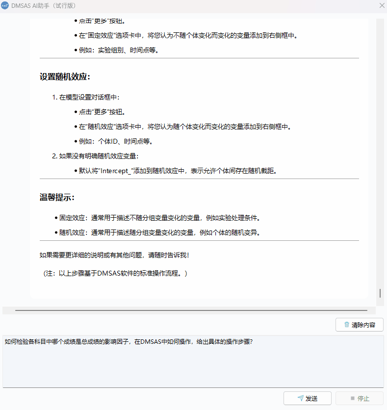 交互式解析:针对初次回答中的模糊表述,用户可连续追问,AI将结合DMSAS操作界面分步骤演示。